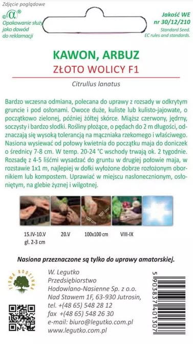 Arbuz, kawon Złoto Wolicy b. wczesny LEGUTKO