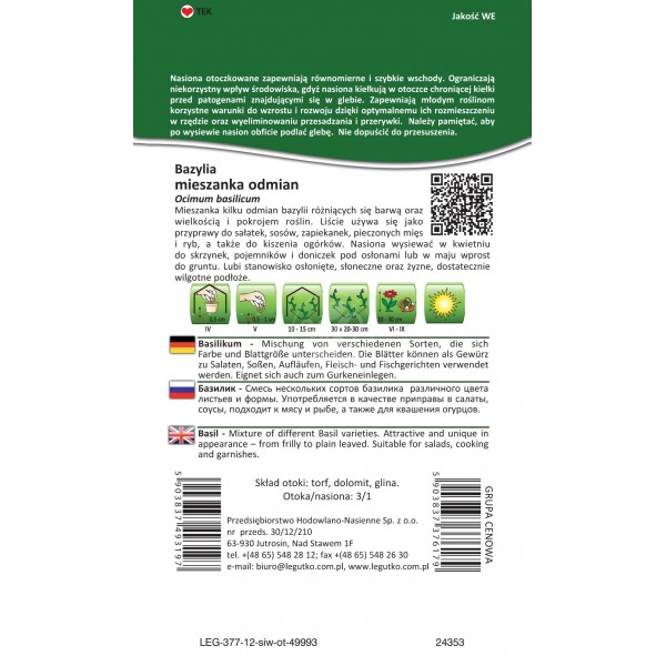 Bazylia mieszanka odmian, otoczkowana LEGUTKO