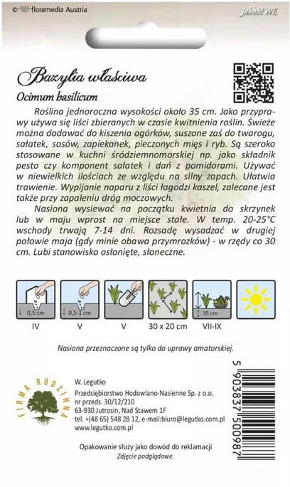 Bazylia właściwa zielonolistna - zioła LEGUTKO