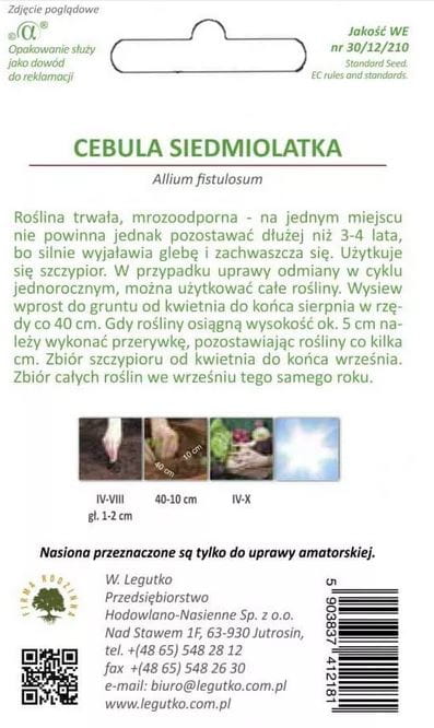 Wysiew wprost do gruntu od kwietnia do końca sierpnia w rzędy co 40 cm. Gdy rośliny osiągną wysokość ok. 5 cm należy wykonać przerywkę, pozostawiając rośliny co kilka cm. Zbiór szczypioru od kwietnia do końca września. Zbiór całych roślin we wrześniu tego samego roku.