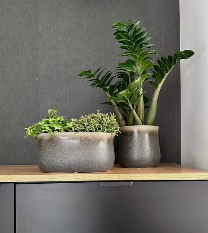 Doniczka ceramiczna CIENIOWANA jak kamionka szaro-brązowa
