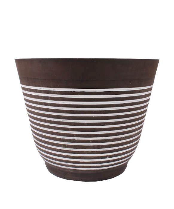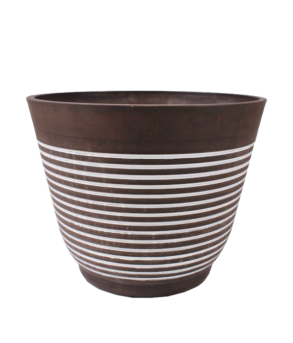 Doniczka z kompozytu BRĄZOWA W BIAŁE PASY 38x30cm