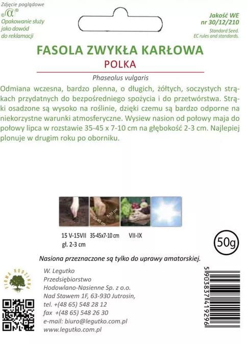 Fasola szparagowa karłowa Żółta Polka 40g LEGUTKO
