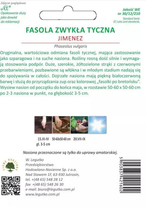 Bardzo lubię wasz sklep i firmę W.Legutko. Posiałem fasolę jimenez i bardzo ładnie urosła.