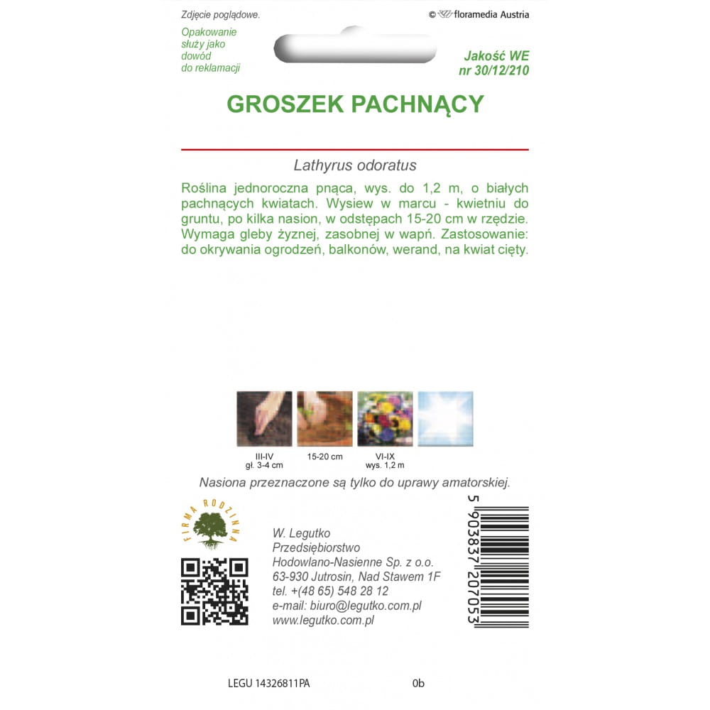 Groszek pachnący BIAŁY pnącze 3g LEGUTKO