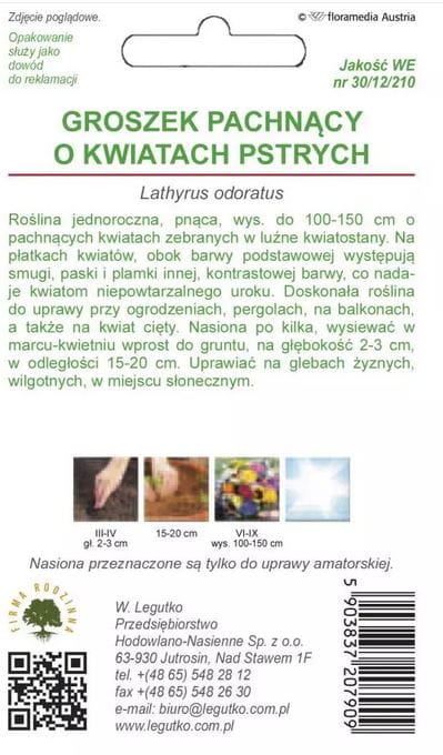 Groszek pachnący o kwiatach pstrych Mix LEGUTKO