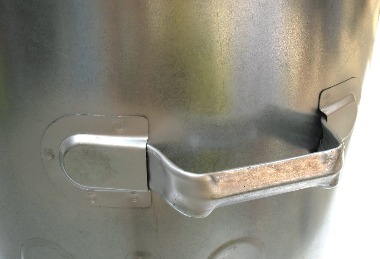 Bardzo solidnie wykonany kosz metalowy, wzmocniony na łączeniach blachą o grubości 2mm. Przeznaczony na śmieci i popiół, ocynkowany z uchwytami przystosowanymi do samochodów "śmieciarek".