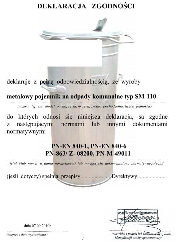 Posiada certyfikat zgodności z normami wymagany przez odbiorców odpadów komunalnych.