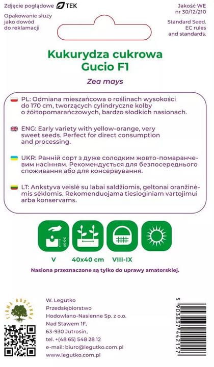 Kukurydza cukrowa Gucio F1 LEGUTKO 10g