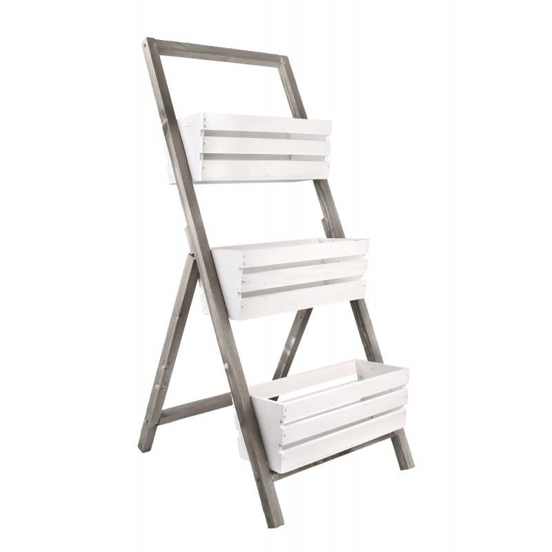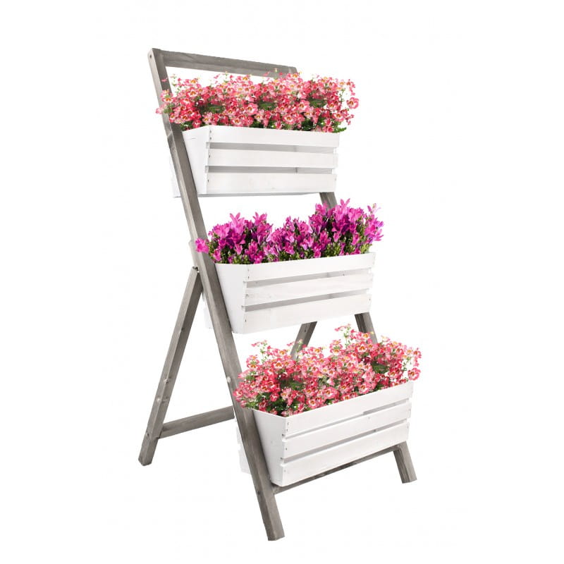 Kwietnik, Stojak DREWNIANY 3 skrzynki BIAŁO-SZARY