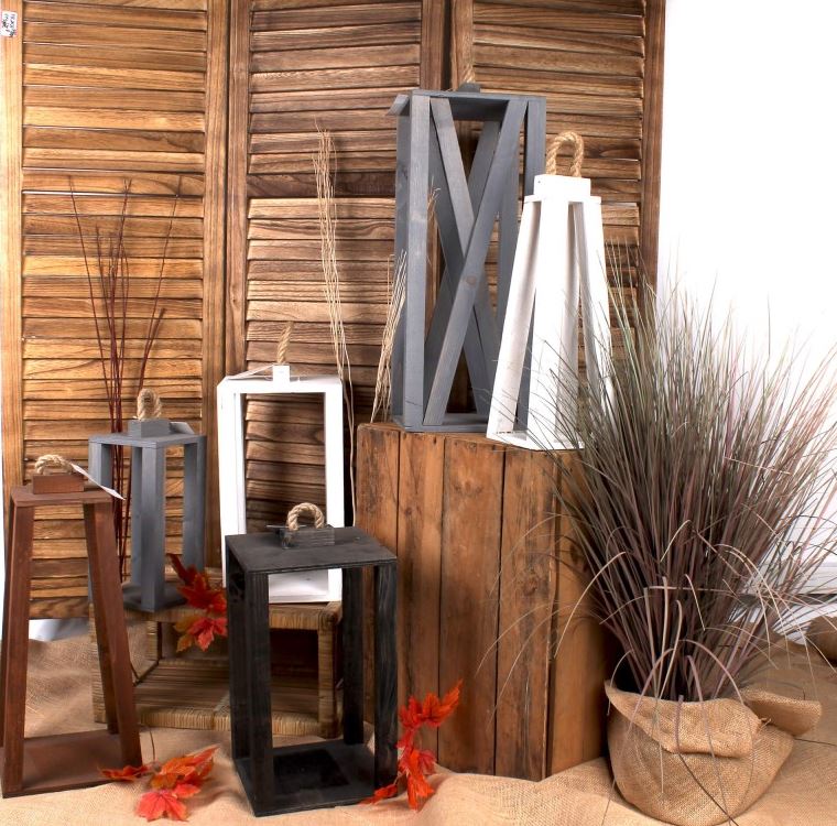 Latarnia drewniana LAMPION czarny naturalny 32cm TD501.C