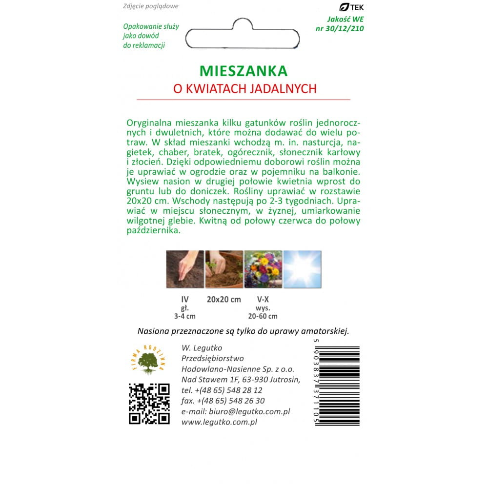 Miesznka roślin o Kwiatach Jadalnych jednorocznych 3g LEGUTKO