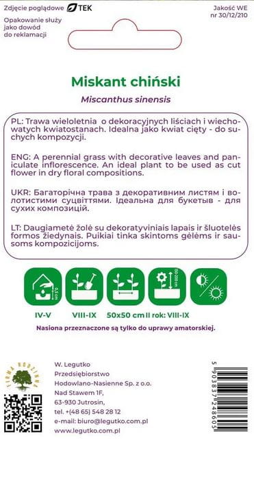 Miskant chiński, trawa wieloletnia dekoracyjna LEGUTKO