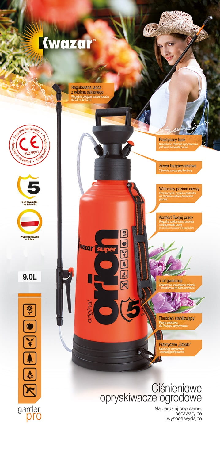 Orion Super to uniwersalny i trwały opryskiwaczy ogrodowy, który doskonale sprawdza się w pracach ochronnych i pielęgnacyjnych w sadach, szklarniach, szkółkach roślin, drzew i krzewów, a także na uprawach warzywnych. Znajduje zastosowanie przede wszystkim przy aplikacji środków ochrony roślin, nawozów dolistnych i herbicydów.