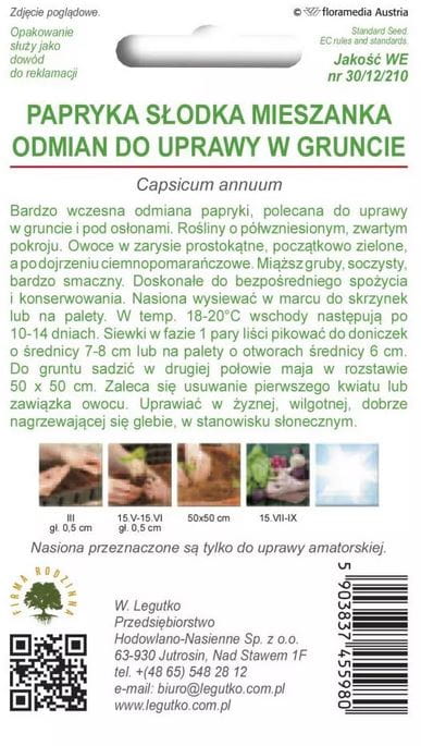 Papryka słodka Mix odmian do gruntu LEGUTKO