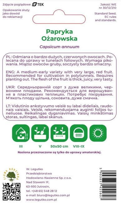 Papryka słodka Ożarowska duża Czerwona LEGUTKO