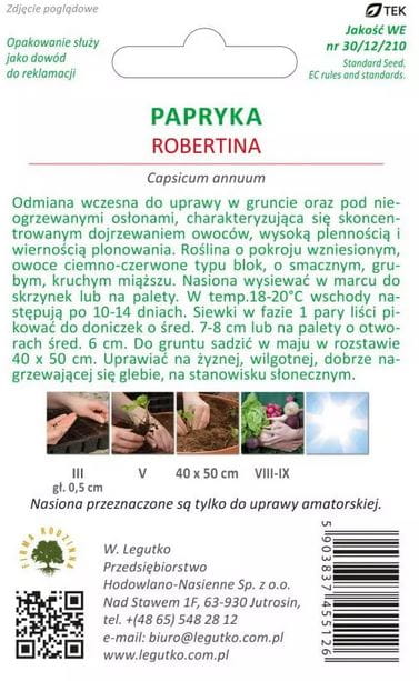 Papryka słodka do gruntu Robertina Czerwona LEGUTKO 5g