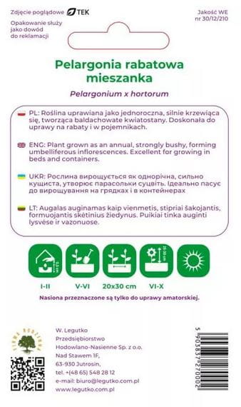 Pelargonia rabatowa Mix kolorów F2 LEGUTKO