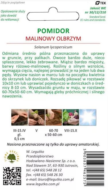 Pomidor gruntowy wysoki Malinowy Olbrzym LEGUTKO