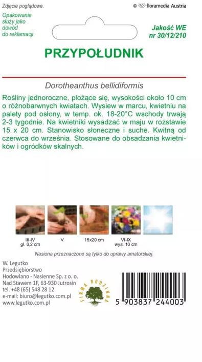 Wysiew w marcu - kwietniu do inspektu. Na rabaty wysadzać w maju w rozstawie 15 x 20 cm. Stanowisko słoneczne i suche. Kwitną od czerwca do września. Stosowane do obsadzania rabat i ogródków skalnych.
