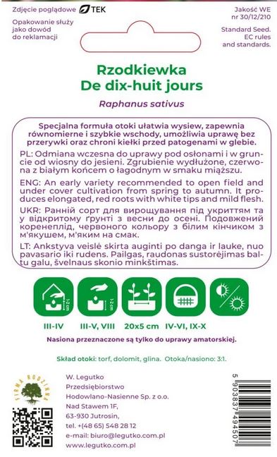 Rzodkiewka De Dix-Huit nasiona otoczkowane LEGUTKO