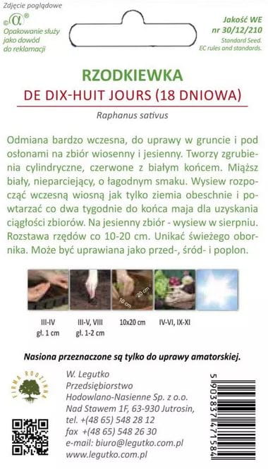 Rzodkiewka De dix - huit jours 18 dniowa LEGUTKO