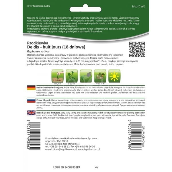 Rzodkiewka De dix-huit jours (18-dniowa) na taśmie LEGUTKO