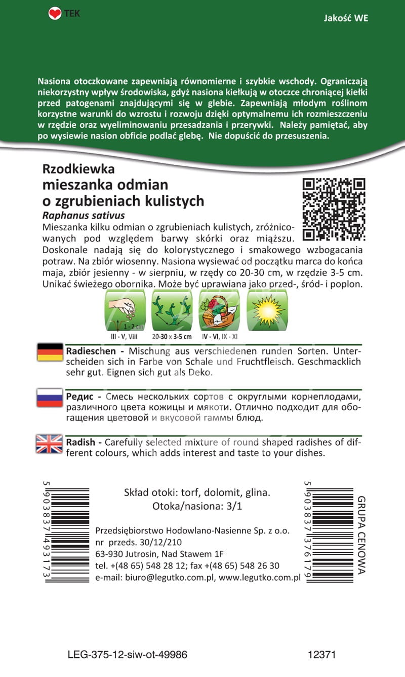 Rzodkiewka Mix odmian, otoczkowana LEGUTKO