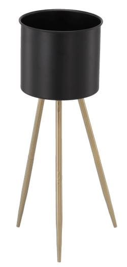STOJAK NA ROŚLINY metalowy kwietnik 21 x 21 x 59cm CZARNY ZE ZŁOTYMI NÓŻKAMI