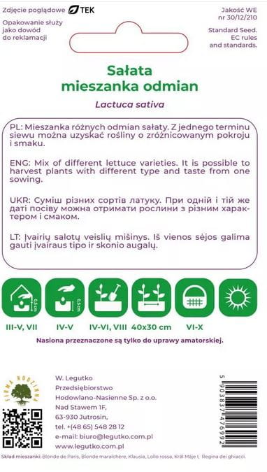 Mieszanka odmian umożliwiająca z jednego terminu siewu, uzyskanie roślin o zróżnicowanym pokroju i smaku.