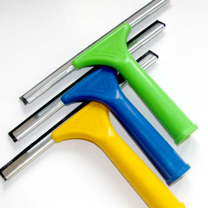 Ściągacz do wody, zawiera rączkę wykonaną z tworzywa sztucznego oraz metalowy ściągacz z gumą. Dodatkowo posiada otwór, dzięki czemu można go zamontować na trzonku.