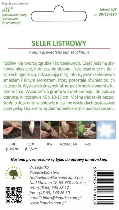Wysiew do skrzynek lub na palety pod osłonami w lutym - marcu. Wysadzać do gruntu w maju, do połowy czerwca, w rozstawie 40 x 10 - 15 cm. Można siać także bezpośrednio do gruntu w połowie maja i po wschodach zastosować przerywkę. Liście można zbierać wielokrotnie podczas sezonu.