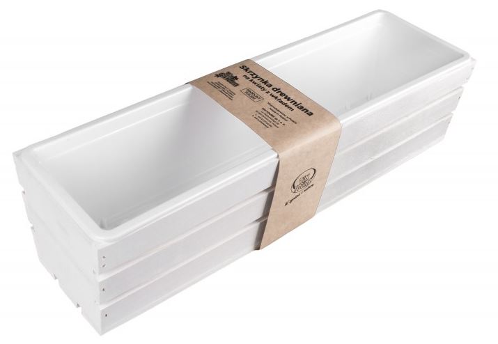 Skrzynka drewniana 60cm balkonowa BIAŁA z WKŁADEM TD100-W.60