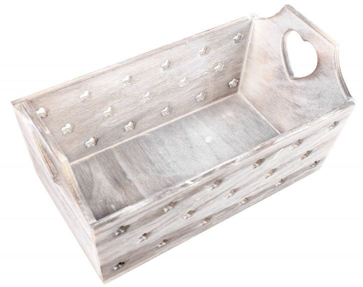 Dzięki skrzynce drewnianej z wyciętym motywem nie tylko wygospodarujesz więcej miejsca do przechowywania, ale także udekorujesz wnętrze, w którym zdecydujesz się ją wykorzystać. Zabieg przetarcia białą farbą daje ciekawy efekt, dzięki któremu drewniana skrzynka nabrała nieco rustykalnego charakteru. Przykuwa wzrok i na pewno nie pozostaje niezauważona.