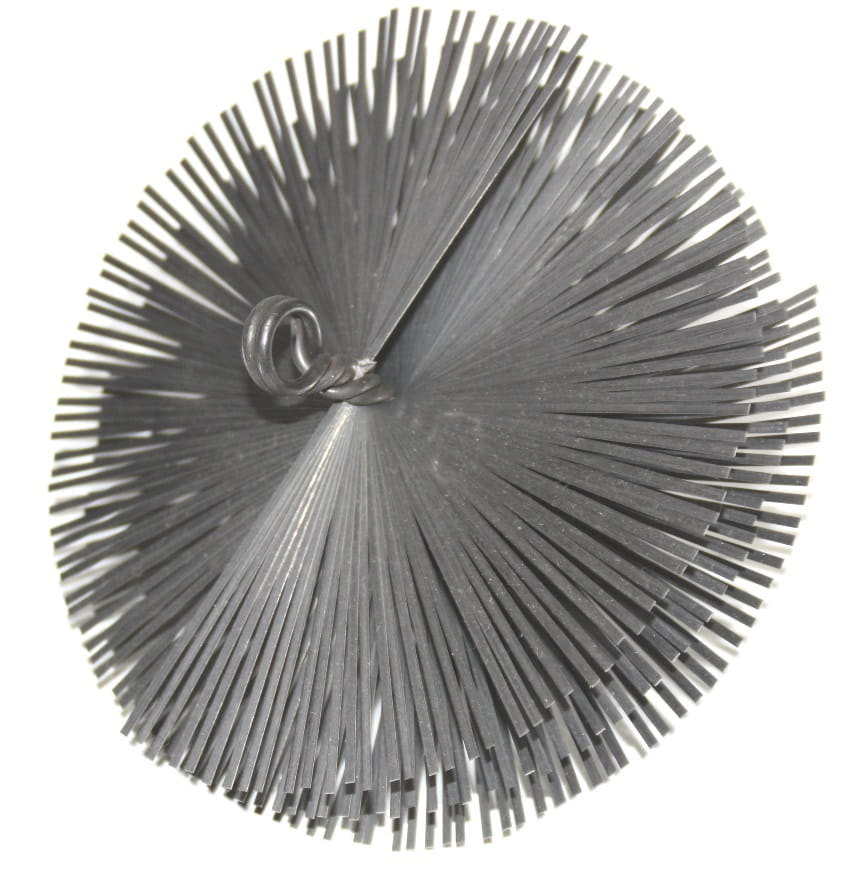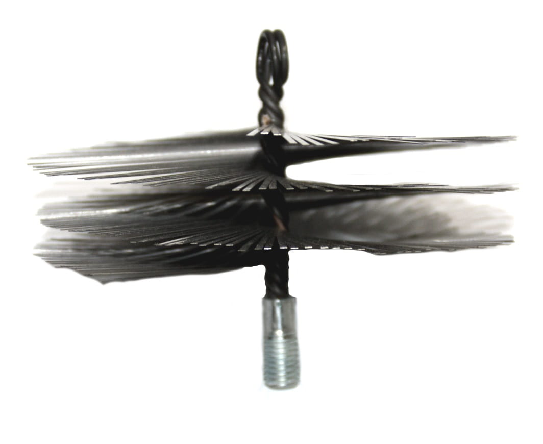 Szczotka przeznaczona do czyszczenia kominów wyposażona w gwint do wkręcenia ciężarka oraz ucho do zamocowania sznurka.