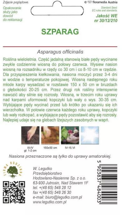 Roślina wieloletnia. Część jadalną stanowią białe pędy, wycinane zwykle codziennie wiosną na rozsadniku w rzędy co 30 cm i co 8 - 10 cm. w rzędzie.
